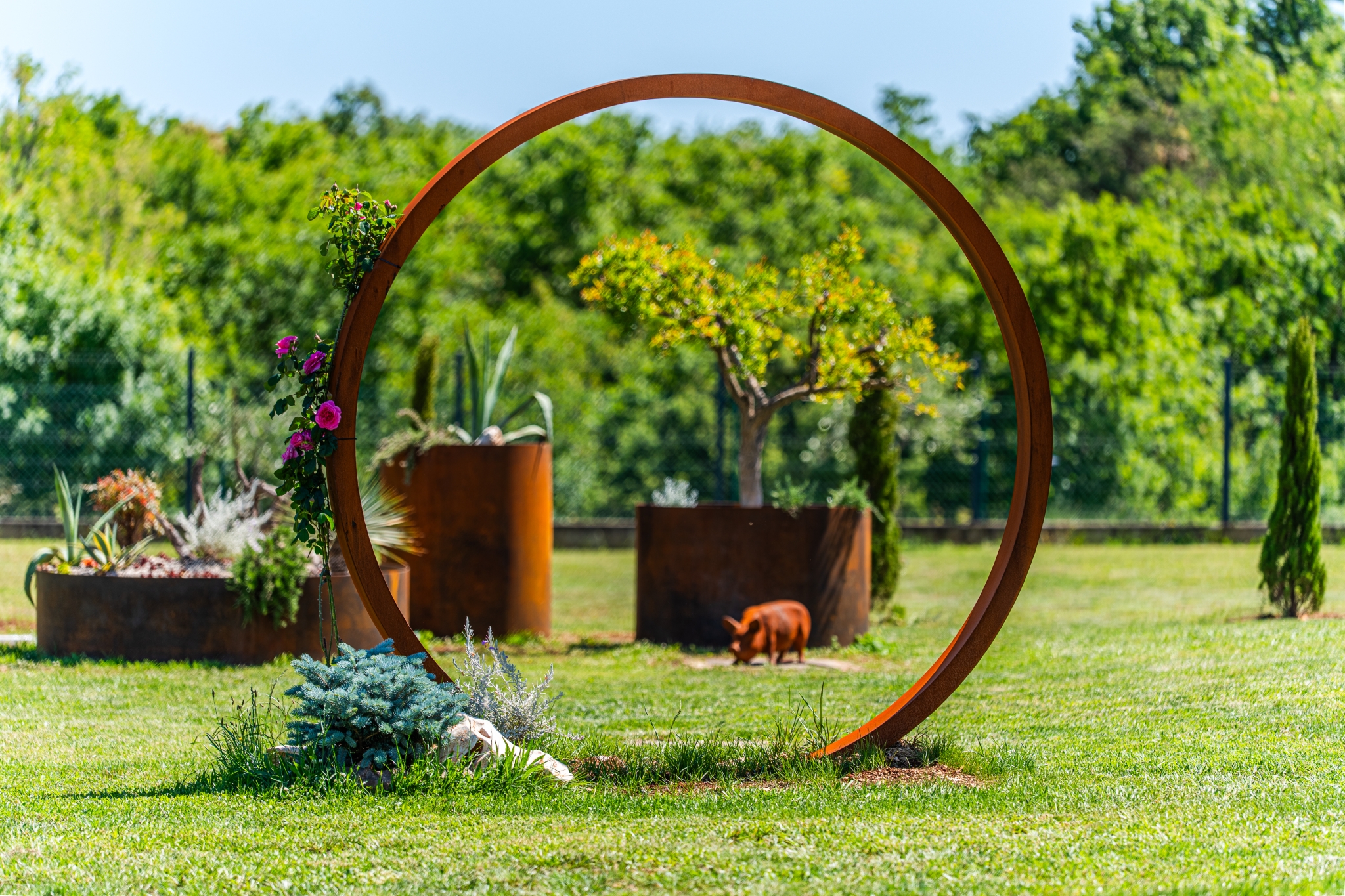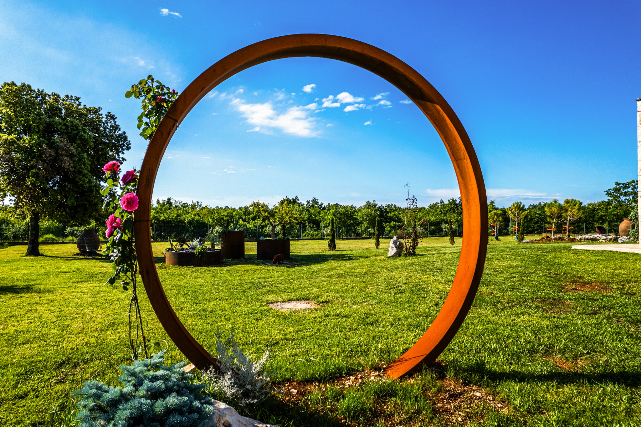 Među zelenilom nalazi se i mali obiteljski maslinik, kao i posađeni tartufari — stabla tartufa koja rastu u simbiozi s hrastom, što je i simbol autohtone flore Istre.
